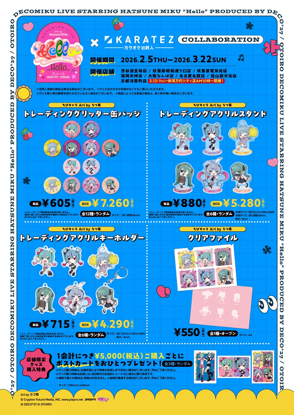 | 開催店舗・期間 | 渋谷道玄坂店 :2026年2月5日(木)~2026年3月22日(日) 秋葉原昭和通り口店:2026年2月5日(木)~2026年3月22日(日) 秋葉原電気街 :2026年2月5日(木)~2026年3月4日(水) 名古屋名駅店 :2026年2月10日(火)~2026年3月3日(火) ※店舗により開催期間が異なる場合がございます。 |