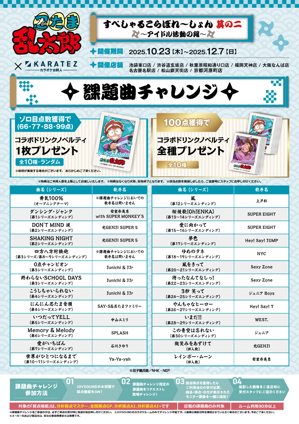 開催店舗 | カラオケの鉄人 池袋東口店 / 渋谷道玄坂店 / 秋葉原昭和通り口店 / 福岡天神店 / 大阪なんば店 / 名古屋名駅店 / 松山銀天街店 / 京都河原町店 |