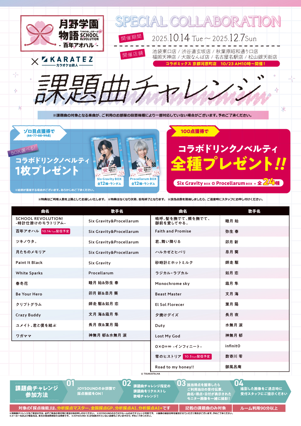 開催店舗 | カラオケの鉄人 池袋東口店/渋谷道玄坂店/秋葉原昭和通り口店/福岡天神店/大阪なんば店/名古屋名駅店/松山銀天街店/京都河原町店 |