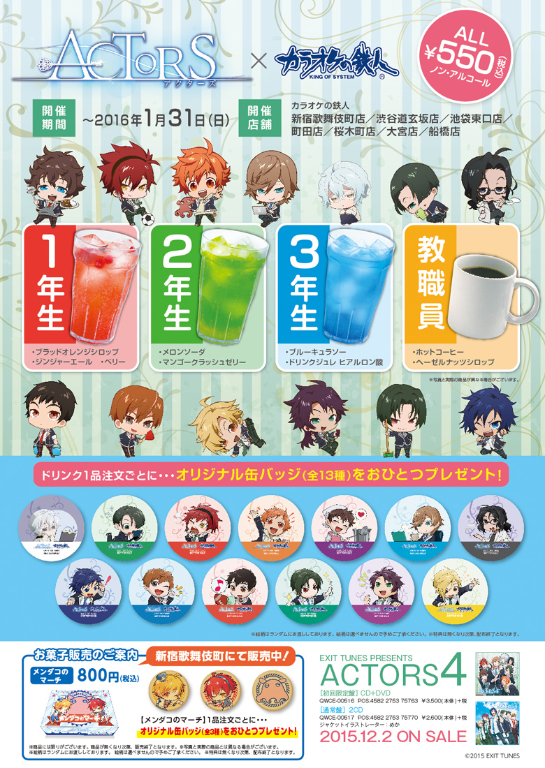 ACTORS4とのスペシャルコラボレーション開催!コラボメニューにオリジナル缶バッジをご用意!